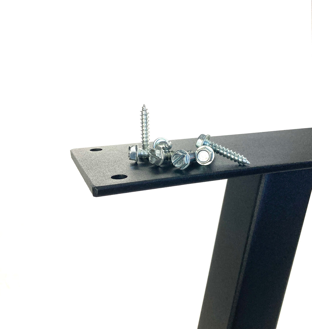 -Mounting hardware is included - 1.25" x 1/4" hex head lag screws - with 6-8 mounting holes per leg, depending on size. Mounting holes will be slightly oversized to allow for some wood movement.