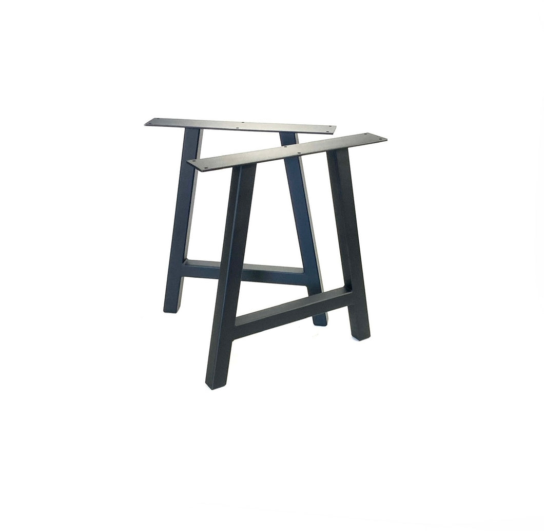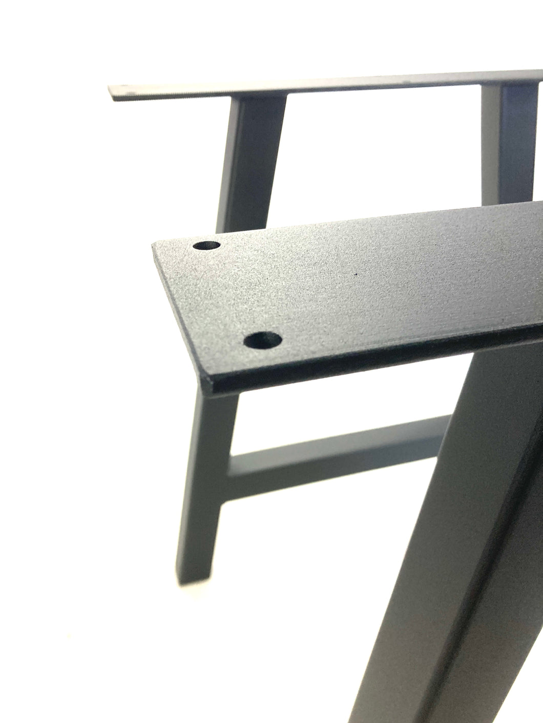 Hand fabricated to your exact dimensions, these metal legs are come ready to install on to your custom desk top, office workstation, or live edge slab!
